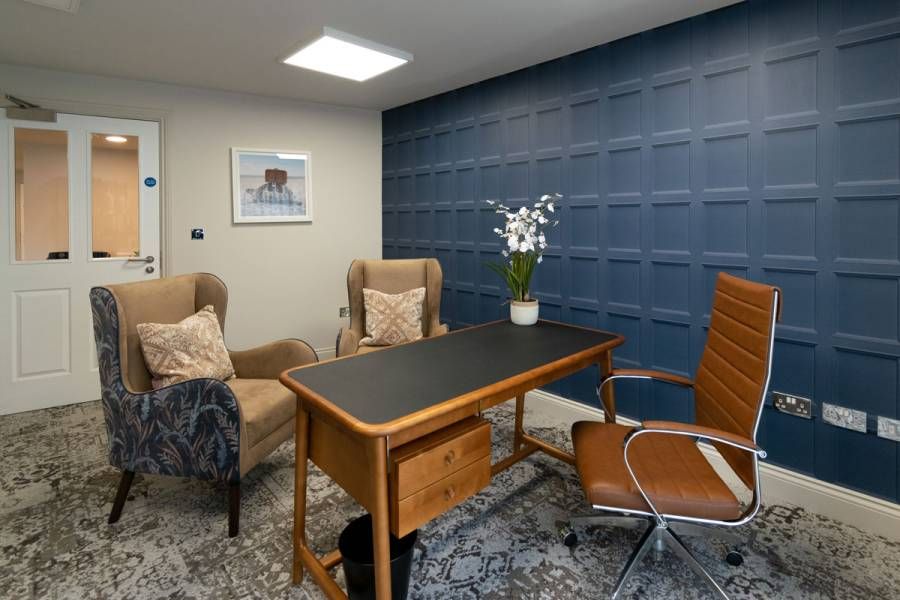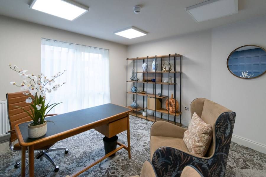 The manager’s office was planned as a space that feels both professional and approachable. A small consultation area with comfortable seating allows for private conversations with residents and families, while integrated storage and discreet technology keep the space efficient for day-to-day management for the staff.